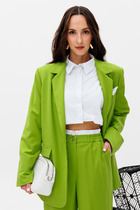 Текстильный жакет трапециевидного силуэта с высокой шлицей по спинке. Детали: свободный покрой, пиджачный воротник, талиевые вытачки, функциональный нагрудный карман, прорезные карманы с клапанами, застежка на пуговицы, спинка со средним швом и высокой шлицей, рукава втачные двухшовные, жакет на подкладке.