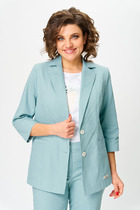 Детали: жакет прямого силуэта, расширенная линия плеч, пиджачный воротник, перед с прорезными функциональными карманами, однобортная застежка на петли и пуговицы, спинка со средним швом и шлицей, рукава втачные двухшовные, жакет на подкладке.