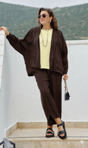 Длина жакета по спинке около 64 см в размерах 40-46 и около 67 см в размерах 48-52, длина рукавов около 61,5 см.