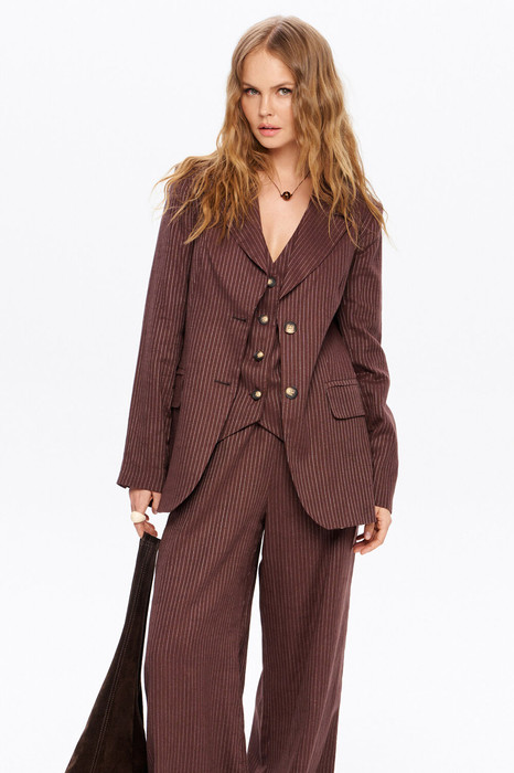 Жакет полуприлегающего силуэта из льна в тонкую полоску.
