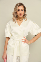 Детали: жакет полуприлегающего силуэта, расширенные плечи, рельефы, пиджачный воротник, застежка на две петли и пуговицы, функциональные карманы, жакет на подкладке. Жакет также можно зашнуровать по бокам.