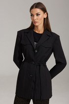 Детали: полуприлегающий силуэт с расширенными плечами, цельнокроеный воротник-стойка, застежка на петли и декоративные пуговицы, рукава втачные двушхшовные, жакет на подкладке