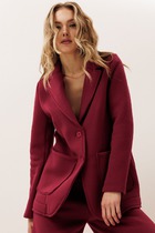 Спинка жакета со средним швом и рельефом. Рукав двухшовный, втачной. Воротник и подборта пиджачного типа.
