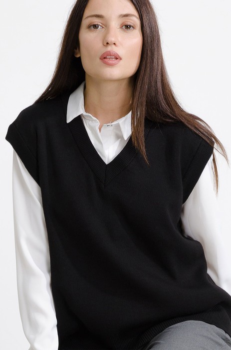 Однотонный жилет черного цвета отлично впишется в любой дресс-код, подойдет для деловой офисной встречи, в школу, а также в праздничной обстановке непременно украсит ваш элегантный лук. Благодаря универсальному размеру безрукавка подойдет девочкам подросткам, с ней получатся классные школьные образы.