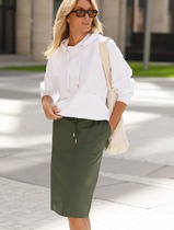 Модель Лера, ее рост 167 см, параметры: 85-61-88. На ней свитер единого размера 42-52.