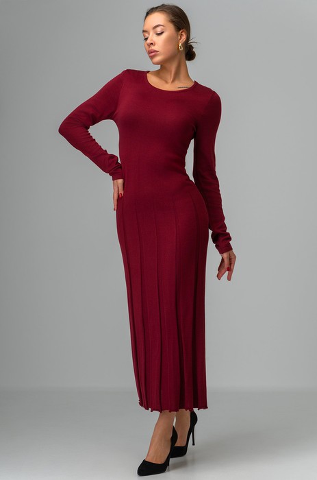 Вязаное женское платье привносит атмосферу праздника и утонченности. Однотонное бордовое платье с длинным рукавом станет незаменимым спутником для осенних и зимних дней.