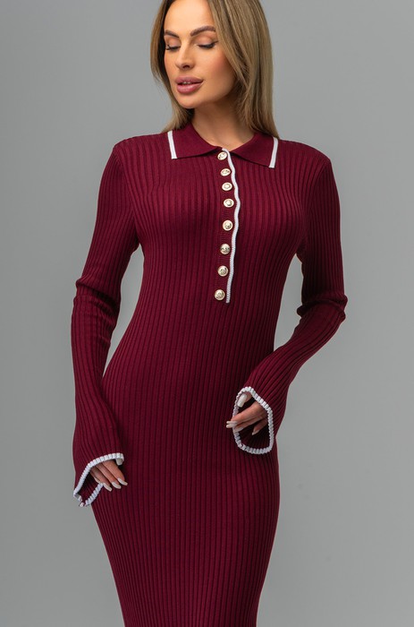 Мягкая пряжа с вискозой и акрилом в составе приятна к телу и бережно согревает. Нарядное бордовое платье идеально на каждый день. Теплое вязаное платье миди для женщин — прекрасный вариант на осень и зиму.