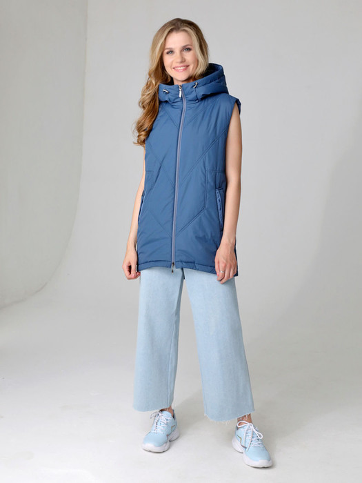 Утепленный  жилет прямого силуэта с застежкой на двухзамковую молнию (позволяет легко расстегнуть ее как сверху, так и снизу) подходит для девушек и женщин любого возраста. Воротник - уютная стойка, переходящая в капюшон. Удобно расположенные карманы, застегиваются на кнопку. Есть внутренний кармашек на молнии. Такой легкий, красивый, стильный жилет выручит Вас осенью, весной и даже прохладным летним вечером. Фантазируйте с аксессуарами, меняйте одежду, и эта вещь станет любимой в Вашем гардеробе.
