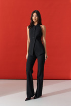 Жилет свободного силуэта.Металлические пряжки по бокам.Боковые швы соединяются хлястиком на пряжке.Карманы с клапанами.Разрез по спинке скреплен декоративным швом.Сочетается с блузками, юбками этой же коллекции.