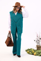 Жилет приталенного силуэта с застёжкой на пуговицы. Отложной воротник, по переду накрадные карманы с клапанами. В комплекте идёт пояс.