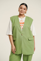 Жилет свободного силуэта из объемной стеганой ткани. Жилет на подкладке. Спущенная линия плеча, застёжка на кнопки. По переду широкие накладные карманы с клапаном с боковым входом для удобства. В комплекте идёт пояс из основной ткани. Длина по спинке 71-73 см.