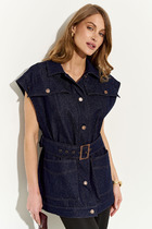 Совместные покупки Курган Женская одежда Жилеты — Жилет на молнии "Матрёшка" с капюшоном, голубой