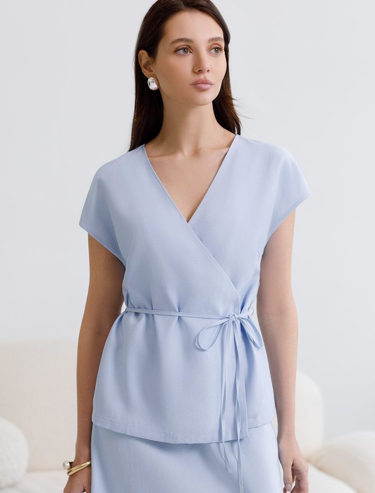 Жилет на запАх с поясом из плотного лиоцелла