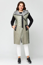 Женская утепленная жилетка - это идеальный вариант стильной и теплой женской безрукавки для демисезонного периода. Она изготовлена из качественного материала на синтепоне. Мягкий материал демисезонной жилетки имеет красивый вид, не шуршит и прост в уходе, не теряет форму после многочисленных стирок. Жилет прямого свободного силуэта. Застежка центральная на молнии с планкой на кнопки. По переду прорезные карманы с декоративной листочкой с имитацией кнопки. Боковые швы оформлены декоративным шнуром.