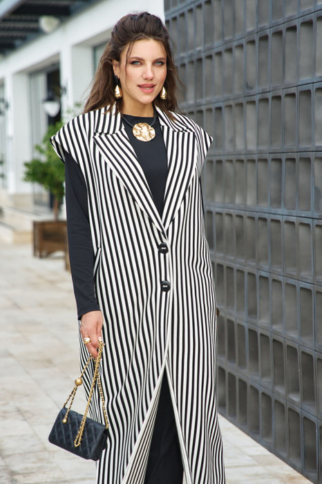 Совместные покупки Курган Женская одежда Жилеты — Жилет Vittoria Queen 27173ж черный/молоко полоска