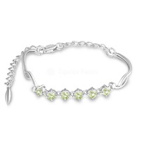 Браслет из серебра с бусинами из синтетической зелёной шпинели родированный - Тр