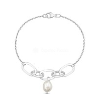Браслет из серебра с жемчугом родированный - 17 см (+5 см)
