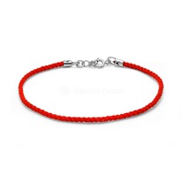 Браслет религиозный из родированного серебра с фианитами (текстильный шнурок)