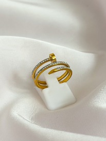 Кольцо с цепью из золочёного серебра с фианитами п1-736з200