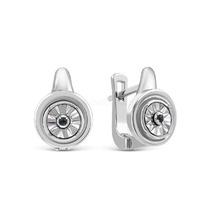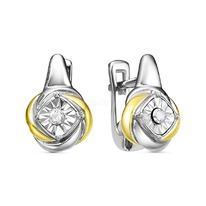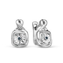Серьги из серебра с синт.муассанитом и фианитами родированные