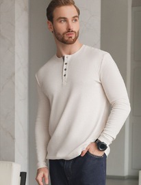 Тонкий лонгслив с круглым воротом на пуговицах из премиального хлопка с эластано