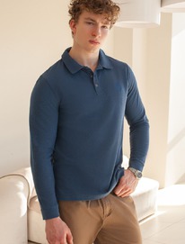 Поло из фактурного трикотажа с застежкой на пуговицы