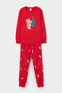 Crockid пижама д/дет яс К 1541/насыщенно-красный,мишки на празднике