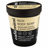СКИДКА! CAFE MIMI Мыло густое Бразильский Какао и Чёрный Уголь