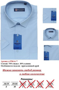 ПОШТУЧНО 4706As** Сорочка мужск. притал. кор. рукав, BROSTEM