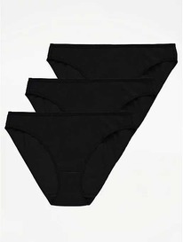 ASDA Black Pure Cotton High Leg Knickers 3 Pack
