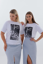 Vilatte Футболка из эластичного футера с авторским принтом D49.095 св.оливковый_