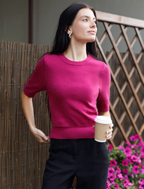 14.04 Vilatte Джемпер из пряжи с кашемиром D39.358 фуксия