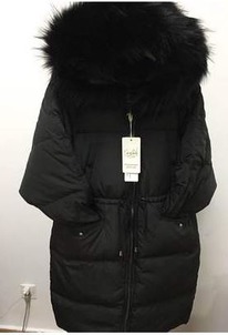 Пуховик оврсайз с мехом енота на воротнике SALE