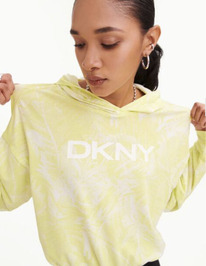DKNY PIXEL PALM PRINT CROPPED HOODIE Sunny Lime