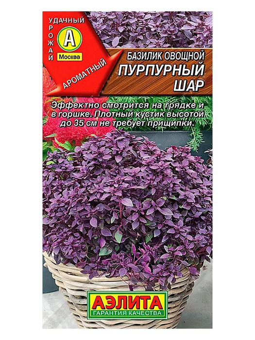 Гармоничное сочетание красоты и вкуса! Неприхотливый сорт, способен без прищипки формировать аккуратные, плотные кустики Ø 25-30 см и высотой до 35 см. Листочки мелкие, темно-фиолетовые с мягким, приятным ароматом, похожим на аромат генуэзского базилика. Идеальный выбор для кулинарных изысков! Цветение позднее, что значительно увеличивает время хозяйственного использования. Сорт засухоустойчивый, отлично удается в контейнерной культуре на балконе и подоконнике. Прекрасно растет в теплицах и открытом грунте.