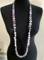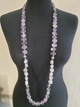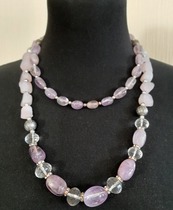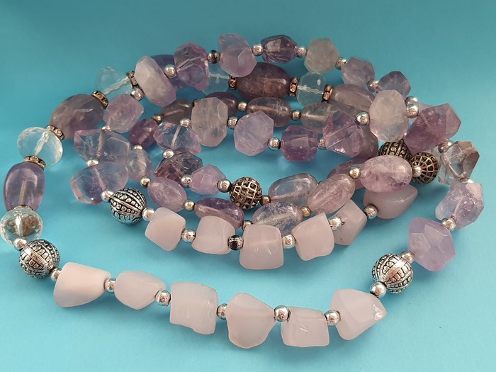 оригинальные длинные бусы из натуральных камней аметиста и розового кварца