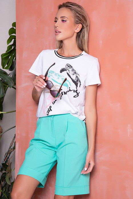 Хит этого лета - стильные и трендовые шорты-бермуды! Бермуды свободного кроя, с завышенной талией, застегиваются спереди на молнию и пуговицу, сзади на поясе регулируются резинкой. Шорты-бермуды пошиты из качественной костюмной ткани.