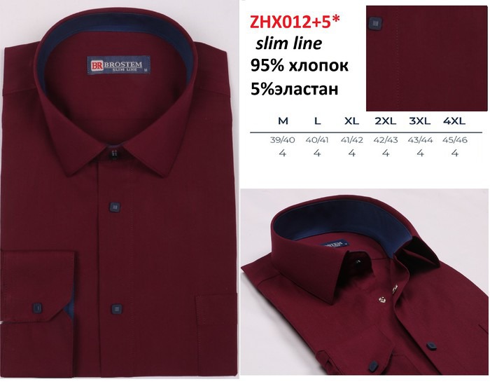 — ZHX012+5* (M-4XL) Сорочка мужская дл.рукав полу притал., BROSTEM