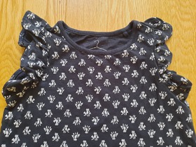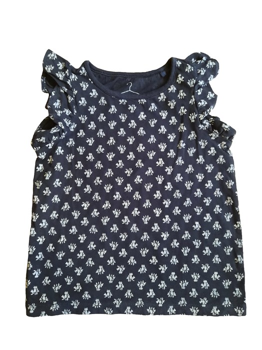 Б/У футболка известного британского бренда Next. Летняя футболка без рукавов, украшена рюшами на рукавах. Цветочный принт по всей поверхности. Цвет: black. Состав: 100% хлопок. Размер: 2-3 YEARS для девочки 2-3 лет, ростом 98 см. Состояние: б/у, отличное.