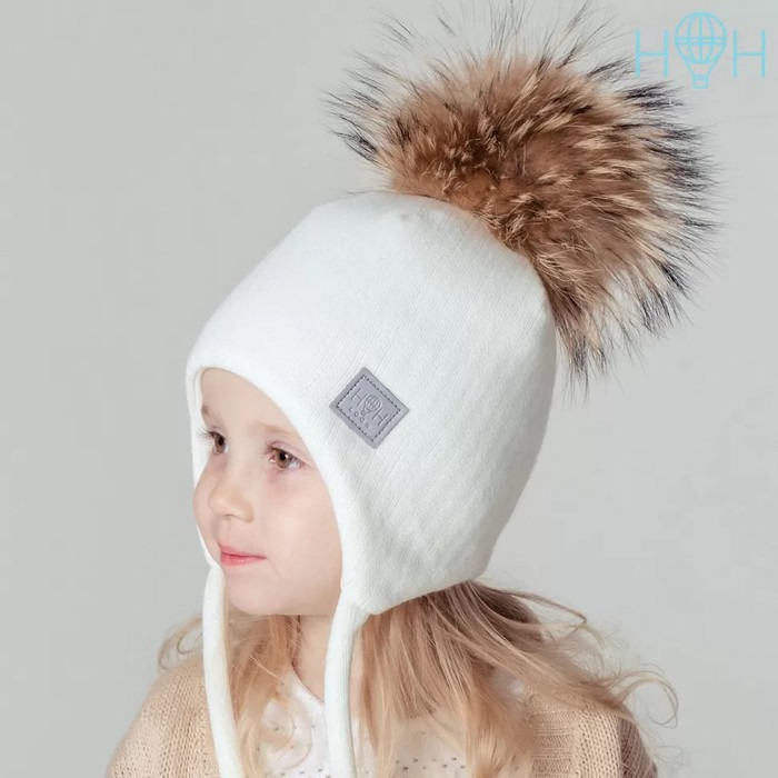 — Hohloon Шапка зимняя с натуральным помпоном, Цвет молочный