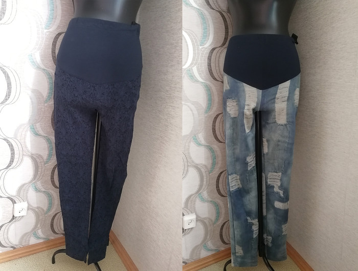 У обоих брюк трикотажные вставки под живот с регулируемым поясом (резинка с пуговкой)