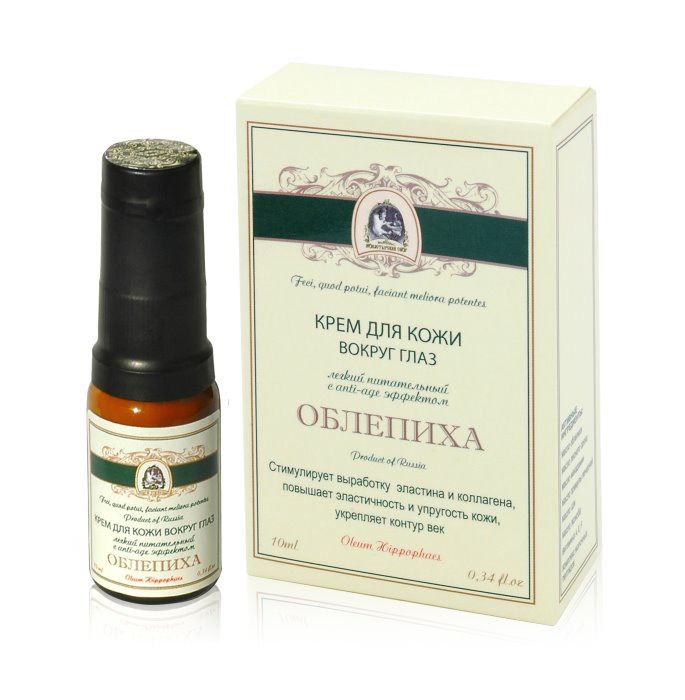 Легкий питательный крем для кожи вокруг глаз «Облепиха». Хорошо увлажняет, освежает кожу, снимает признаки усталости, создает ощущение комфорта. Разглаживает мелкие морщины, вызванные сухостью кожи, восстанавливает упругость кожи, укрепляет контур век. Стимулирует синтез коллагена и эластина. Позволяет поддерживать кожу красивой и ухоженной в любом возрасте.