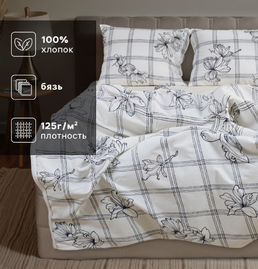 — Комплект постельного белья из бязи Цветы и Клетка