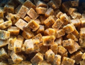 В наличии бывает 2 сорта - один в заморозке имеет светло-жёлтый цвет, другой - жёлто-оранжевый. Оба сорта имеют ярко выраженный вкус маракуйи, но один послаще.