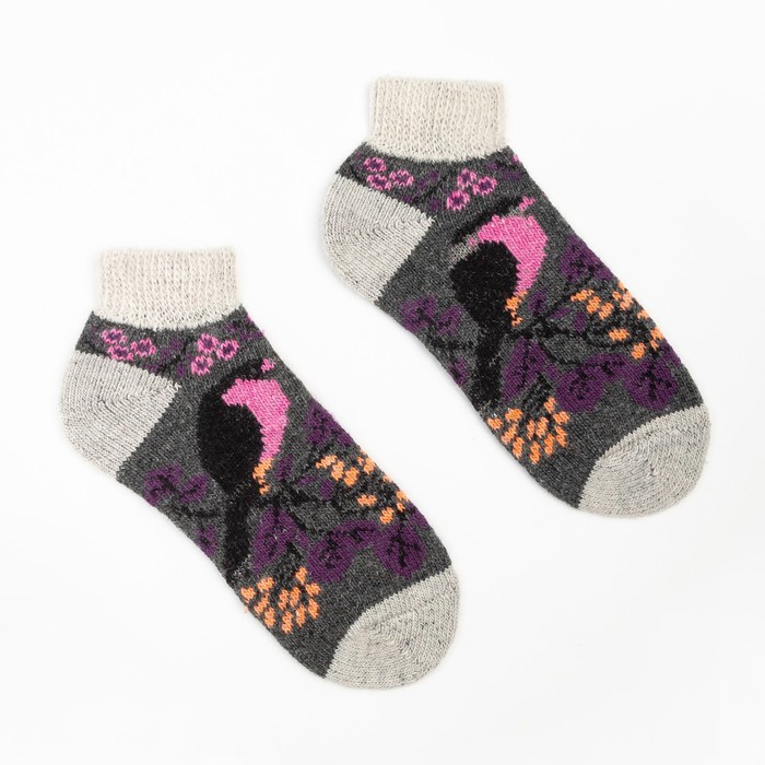 — Носки шерстяные женские короткие Снегири т-серый р25