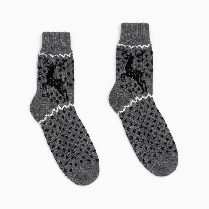 — Носки шерстяные женские Олени т-серый 23-25
