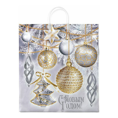 Заказать Пакет Новогодний ПЭ " Интерпак " с пластиковой ручкой ПВД, 40*44см 100мкм Блики