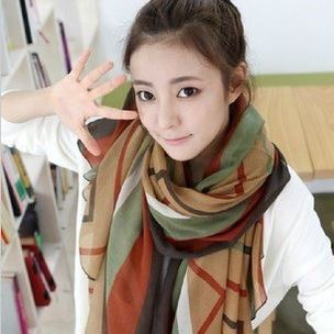 Заказать Палантин из тонкой ткани 170*80 см.хаки полосы