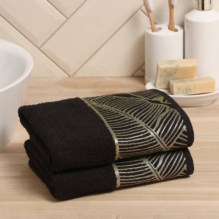 Заказать Полотенце махровое люкс Листья чёрный 50*90