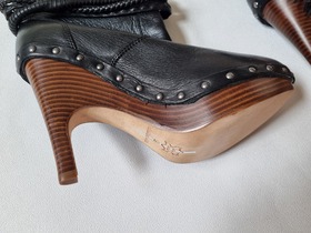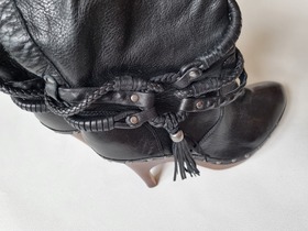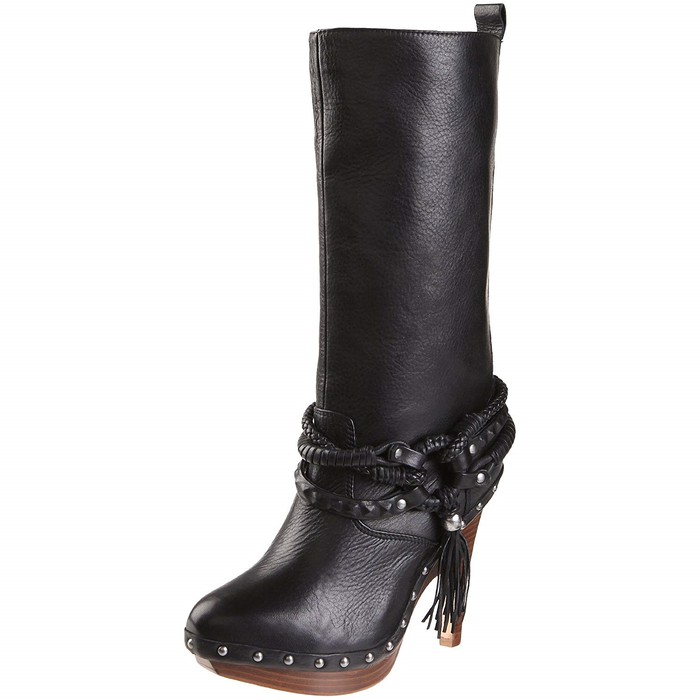Новые демисезонные сапоги известного итальянского бренда Dolce Vita, Women's Henrietta Platform Boot. Брендовые стильные женские сапоги Dolce Vita, кожа класса люкс – одна из разновидностей старинного сафьяна; очень прочная, мягкая, ласкающая ноги, со сдержанным классическим природным рисунком и приятной рельефностью. С изогнутой пяткой на платформе, кольцо с кисточкой соединяет текстурированные ремешки с заклепкамина щиколотках со средней частью голени, сбалансированного на пятке и платформе с металлической отделкой серебристого цвета, заклепками на платформе, кожаная подкладка и стелька. Этот стиль без застежек отлично смотрится надетым поверх джинсов или мини. Цвет: Black. Состав: натуральная кожа 100%. Размер: 9 M US, 39 наш, высота каблука примерно 11,5 см, высота платформы примерно 32 мм. Без коробки.
